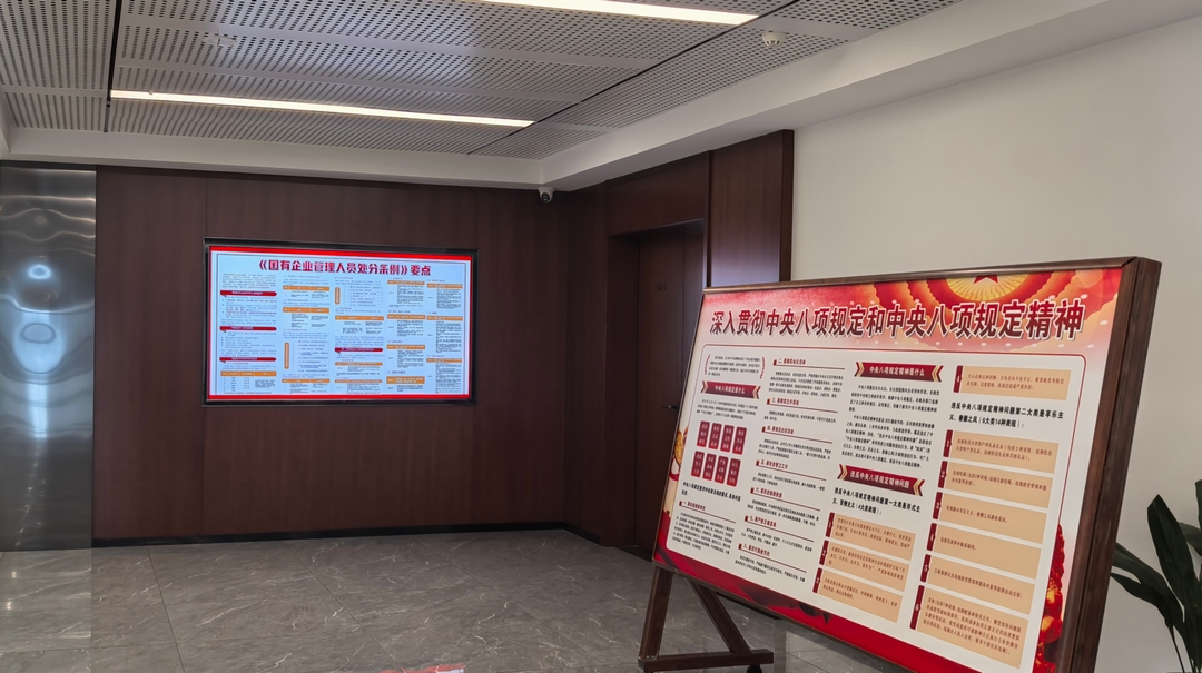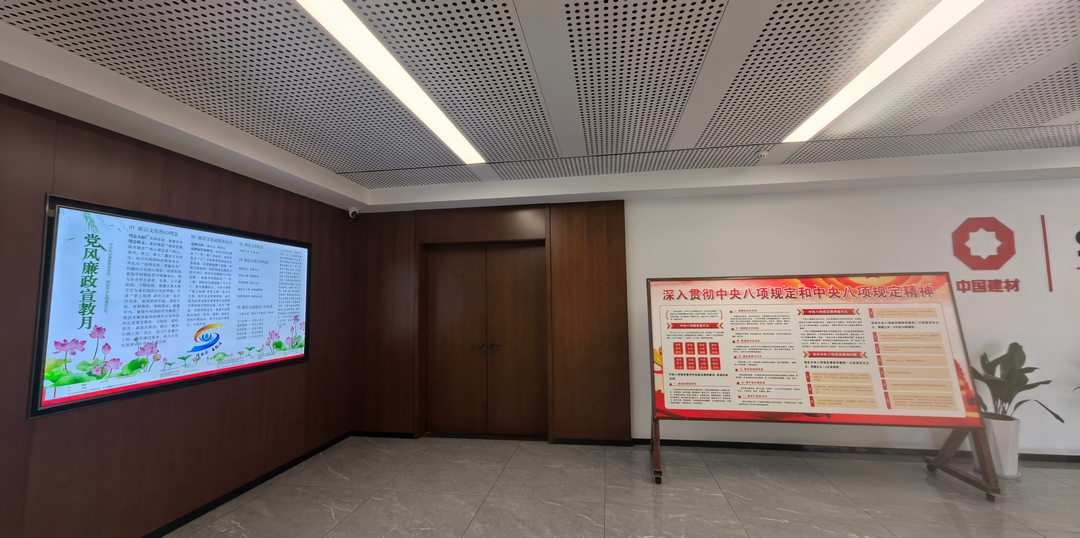 8月,公司纪委在办公大厅摆放深入贯彻中央八项规定和中央八项规定精神宣传展板,在宣传屏循环播放党风廉政建设宣传教育月《国有企业管理人员处分条例》要点和中材国际廉洁文化体系宣教内容,以直观的宣传教育形式,推动廉洁文化理念融入日常生产经营,向广大干部员工传递廉洁文化氛围,助力公司在风清气正的环境中稳健发展。